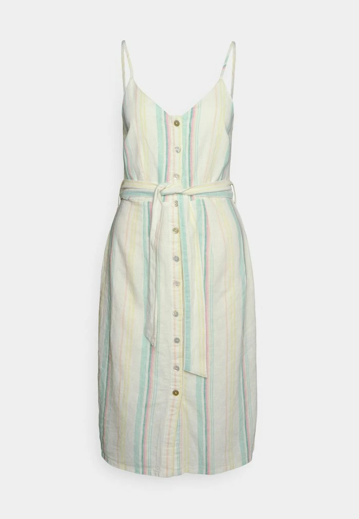 - Details: Belt included, bust darts, adjustable straps