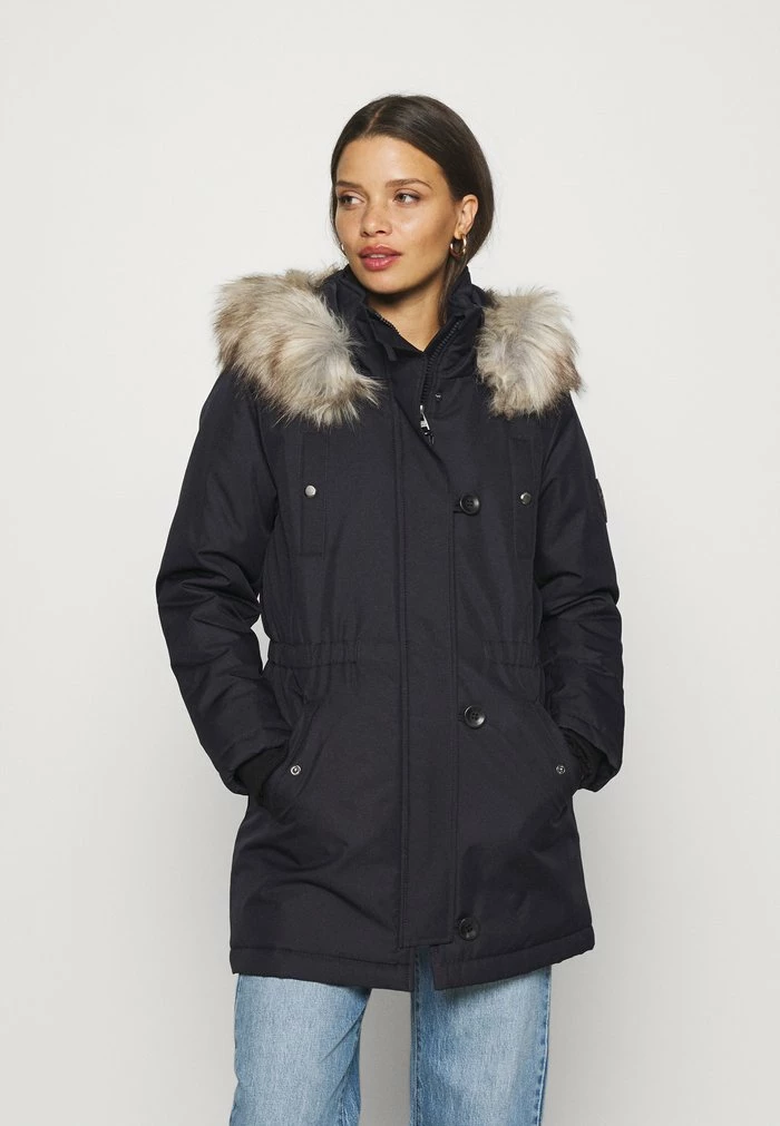 - Hood detail: Lined, removable faux fur collar