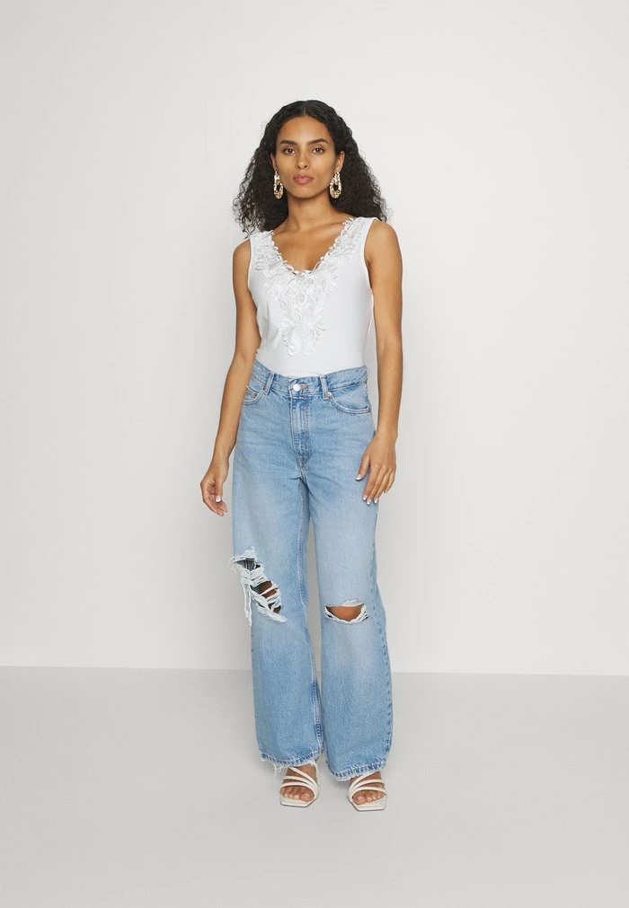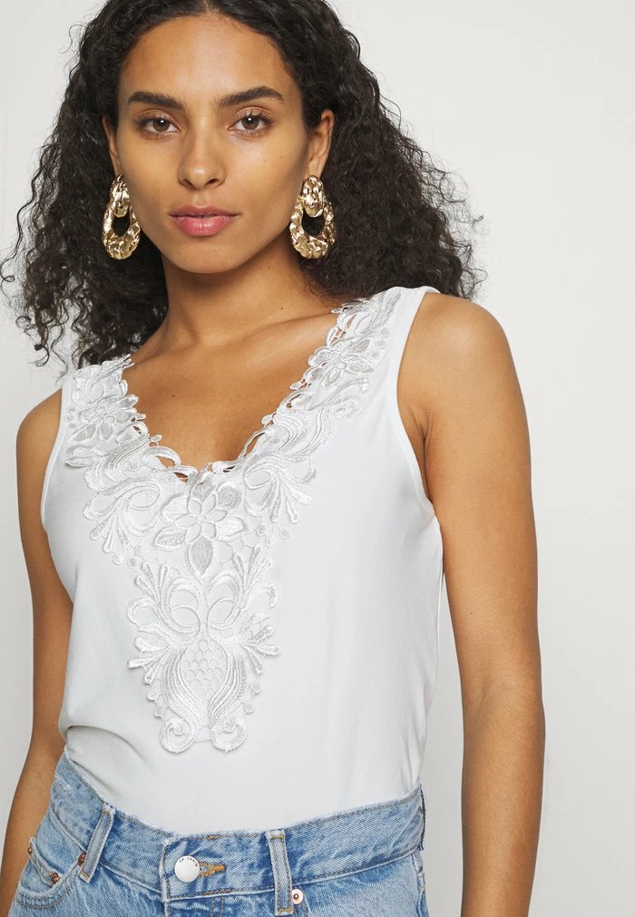 - Neckline: Low-cut v-neck