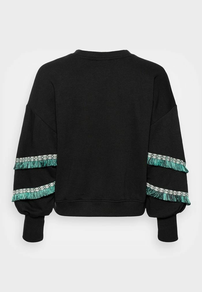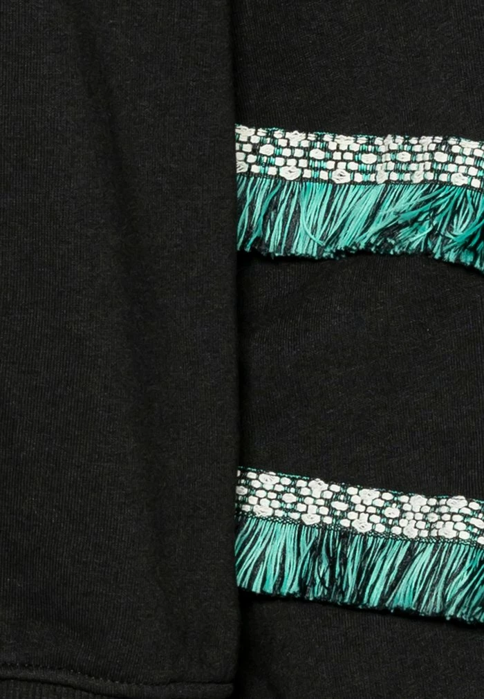 - Details: Elasticated waist, fringing, border